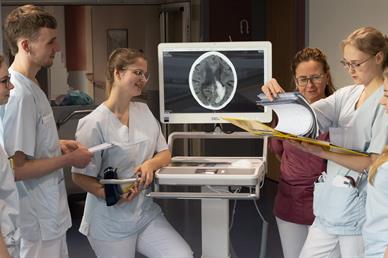 Auf Interprofessionellen Ausbildungsstationen (IPSTA) übernehmen Studierende und Auszubildende verschiedener Gesundheitsfachberufe eigenständig die Patientenbetreuung und das Stationsmanagement von Patient:innen aus der regulären Versorgung zusammen im interprofessionellen Team unter Supervision von examinierten Lernbegleitenden der beteiligten Berufsgruppen. Durch die stetige Kommunikation, die gemeinsame Arbeit sowie eine gezielte Aufgabenteilung steigt das gegenseitige Verständnis füreinander und es werden praktische Erfahrungen gesammelt und interprofessionellen Fähigkeiten entwickelt. In den daraus resultierenden effizienteren Behandlungsabläufen ergibt sich die Chance, die Fehlerrate zu senken und somit die Patientensicherheit zu erhöhen.