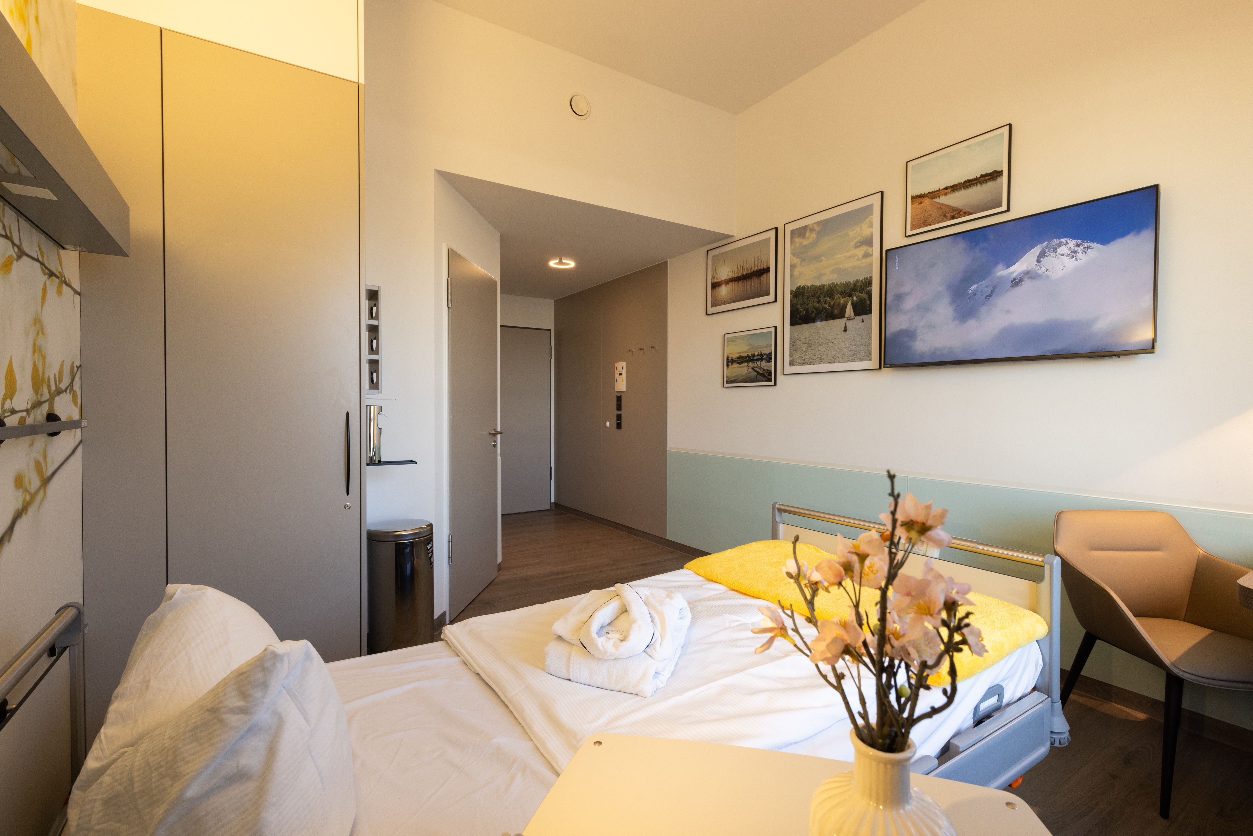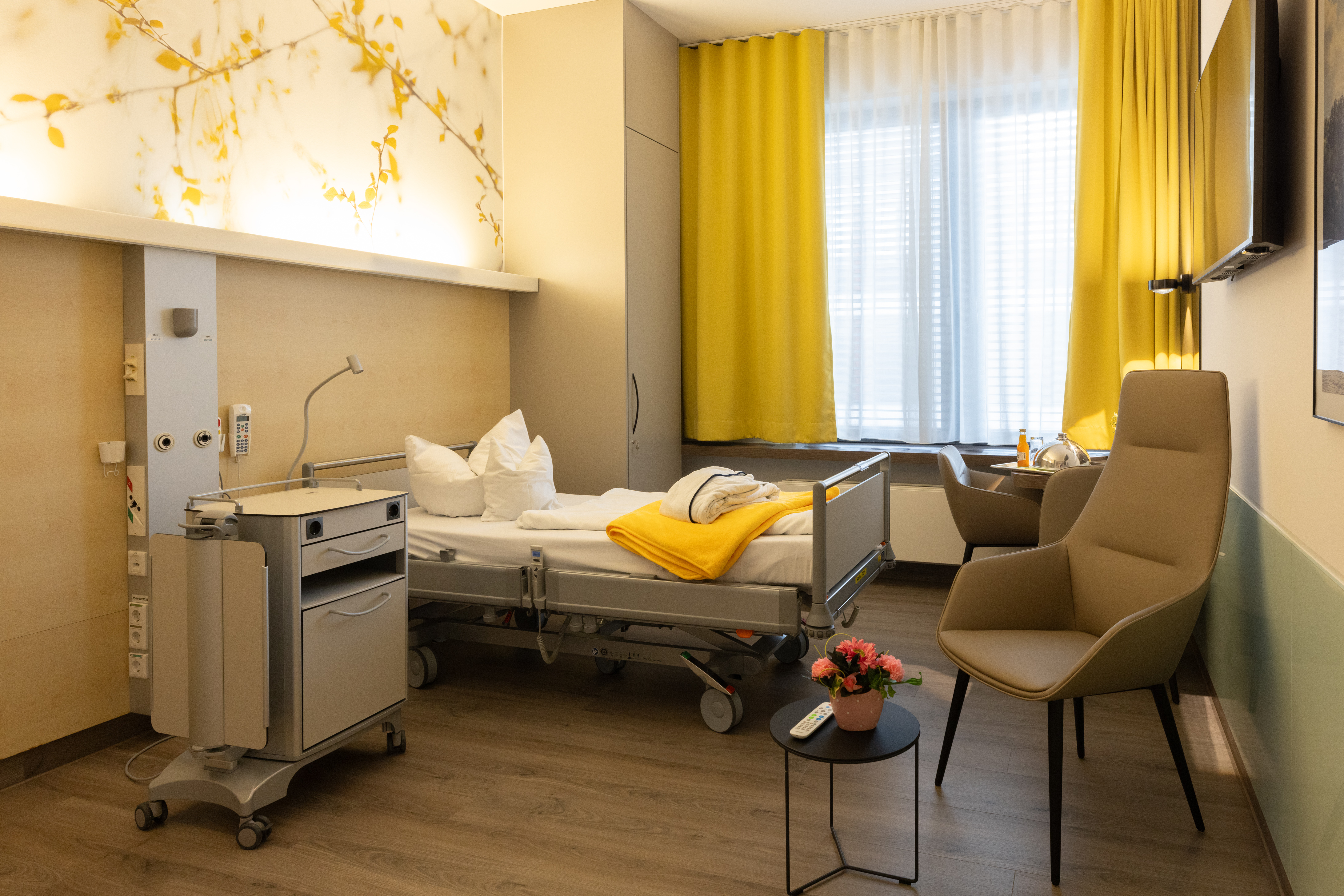 Genießen Sie Ihr Klinikzimmer mit Extras: Ein-/Zweibettzimmer, moderne Ausstattung, vielseitige Verpflegung und Serviceleistungen für Ihr Wohlbefinden.