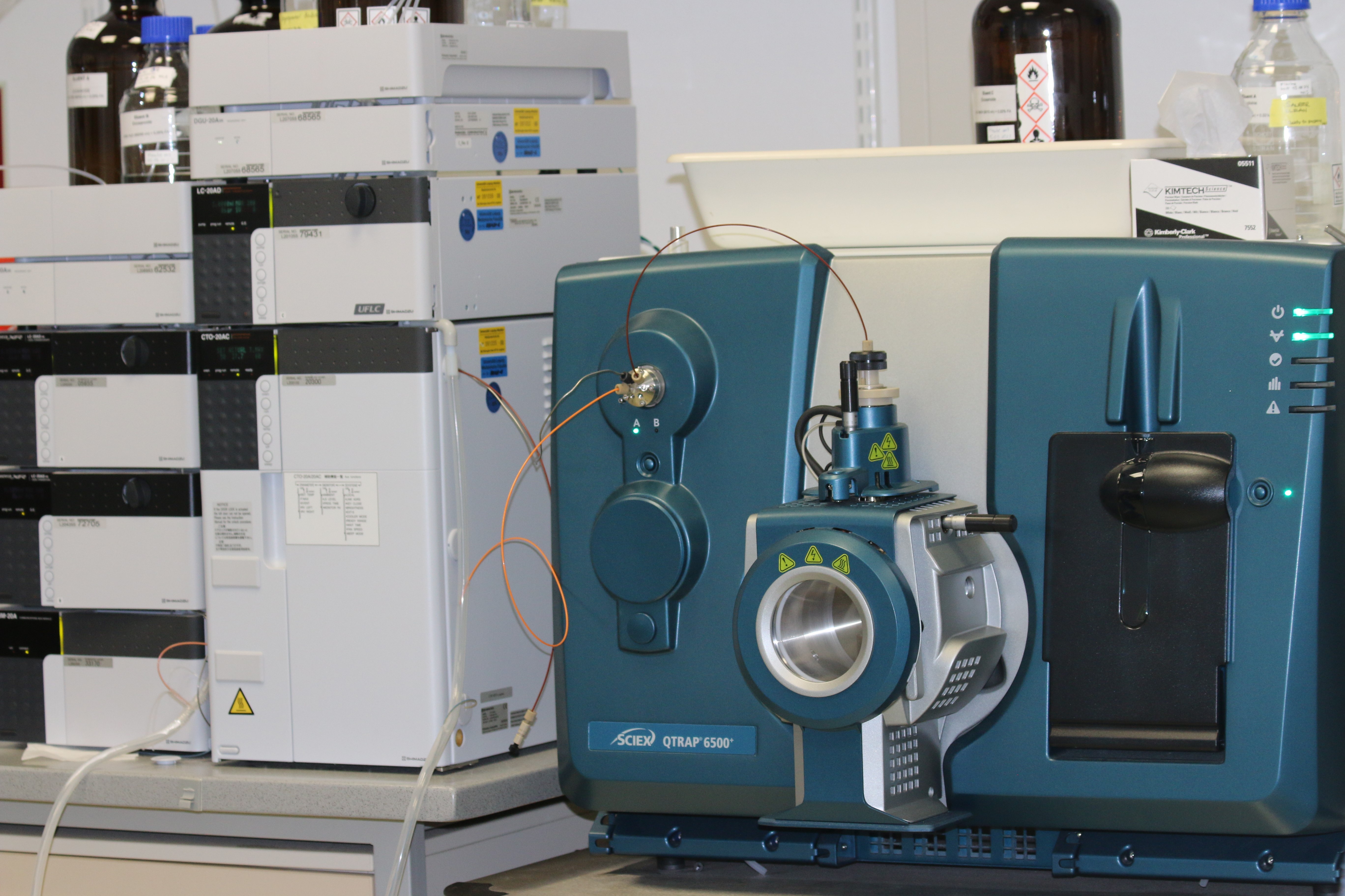 QTRAP 6500+ and HTC-xt_PAL Autosampler (Sciex), HPLC (Shimadzu)