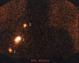 des Tracers erfolgt besonders im SLN, der als erster Lymphknoten in den Szintigrammen