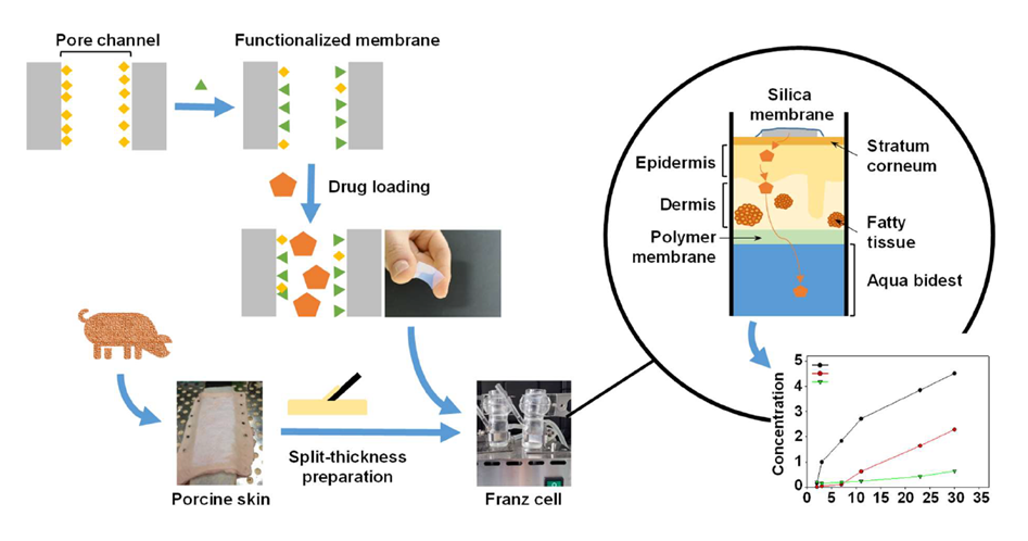 Im diesem Projekt werden erstmals poröse Silica-Formkörper exploriert, die sich durch sehr gute Kompatibilität mit Lösungsmitteln/chemical enhancers, Einsetzbarkeit für ein breites Spektrum an Wirkstoffen zur Beladung, sehr zielgerichtet einstellbare Freisetzungskinetiken, sehr variable Porengrößen und Tortuositäten sowie Stabilität und Wiederverwendbarkeit durch repetitive Be- und Entladung auszeichnen. Diese werden mit verschiedenen, pharmakologisch relevanten Wirkstoffen beladen, die sich bzgl. Hydrophobizität/Hydrophilie und medizinischer Verwendung unterscheiden. Aus Struktur-Aktivitätsbeziehungen werden Porengrößen und -architektur gezielt optimiert sowie zusätzliche Oberflächenfunktionalisierungen eingeführt.